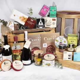 Agasalla calidade 100% gallega con una de nuestras cestas más completas. Bebidas Mencía Expresión, Regina Viarum. D.O. Ribeira Sacra. Sidra espumosa Lía. Val do Traba.…